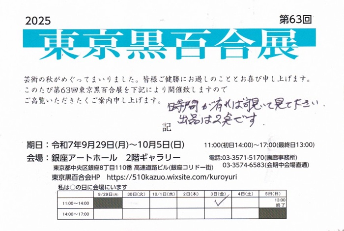 「2025東京黒百合展」の案内状