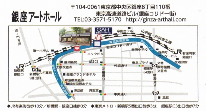 - 場 所 :銀座アートホール 2階 銀座8丁目110番(銀座コリドー街)