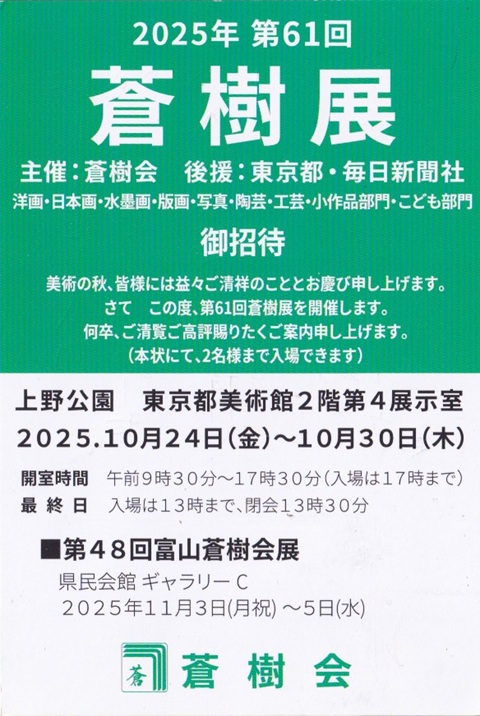 - 展覧会名 :2025年 第61回蒼樹展